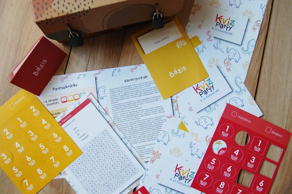 A Kvíz Party egy szülők által könnyedén levezényelhető, nyomkereső és kincsvadászatra épülő játékcsomag, ami otthon vagy akár szabadtéren is megrendezhető. Minden benne van, amire csak szükségetek lehet: kincskereső feladványok gyerekeknek, kellékek, ajándék dekoráció, és egy részletes útmutató, ami végigvezet a lebonyolításon.
